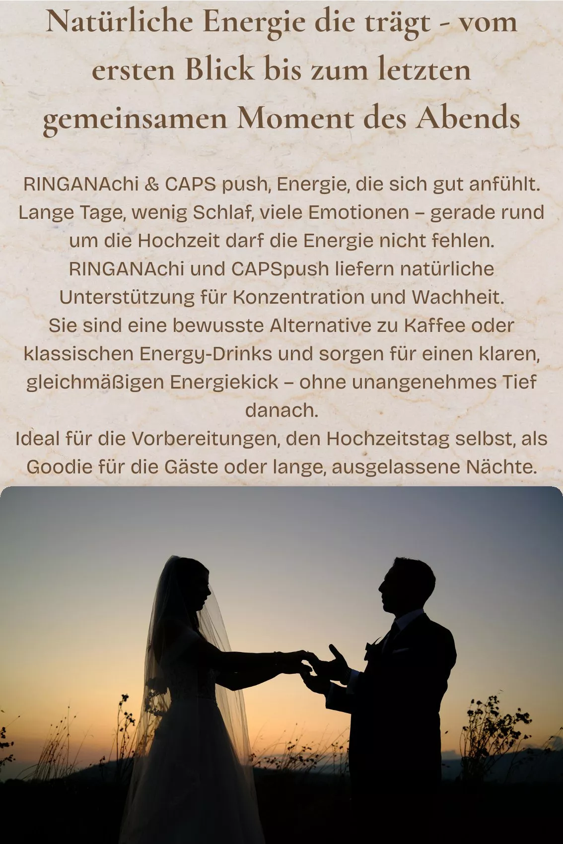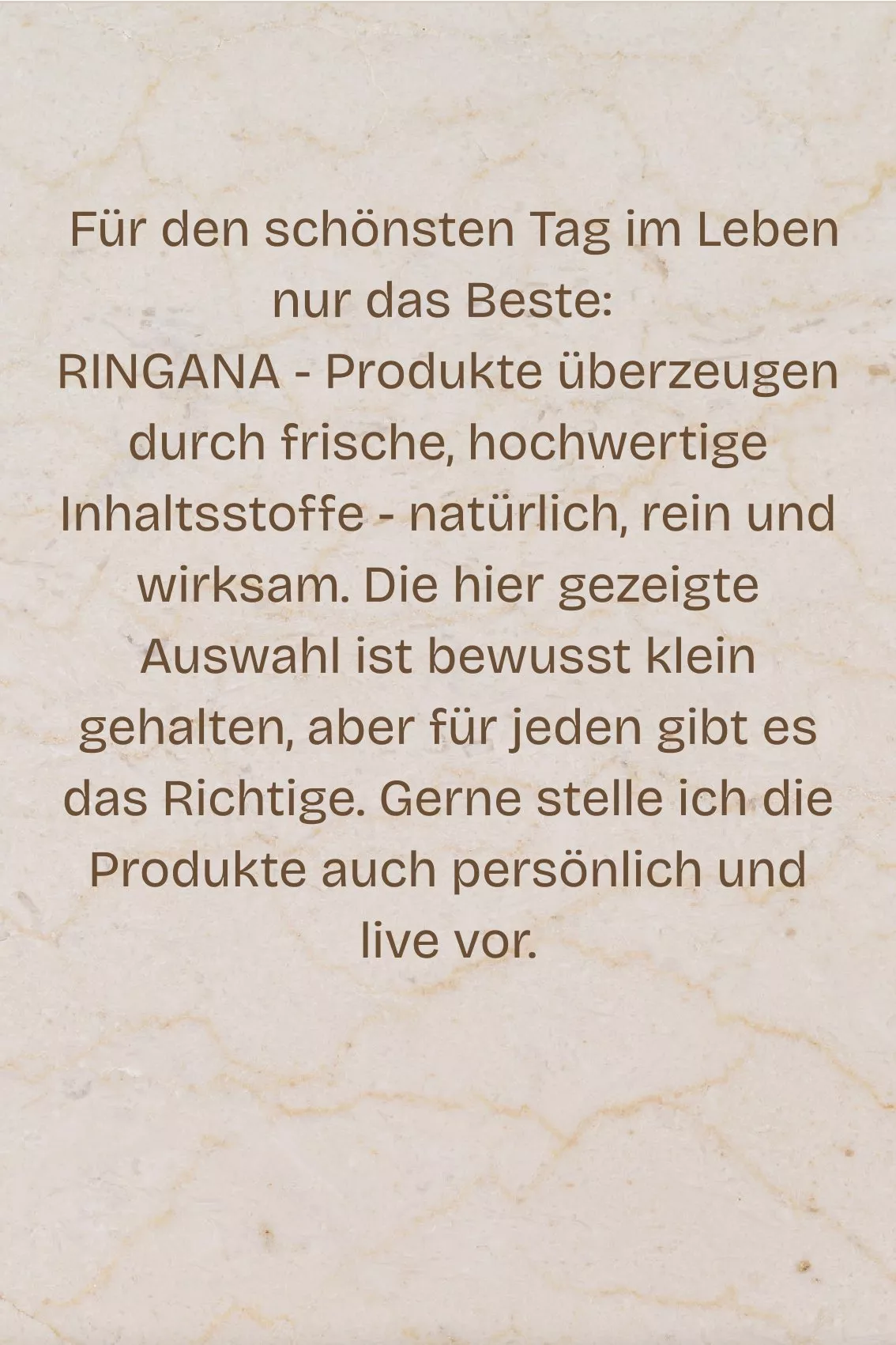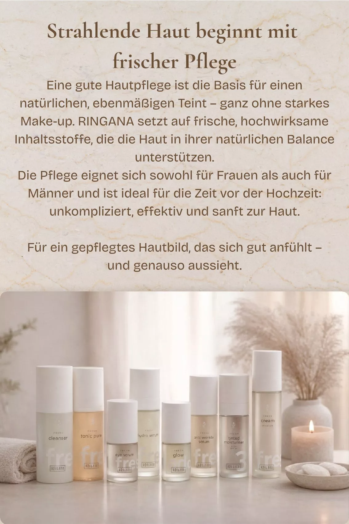 Beratung mit RINGANA für reine, schöne Haut, mehr Energie und weniger Hochzeitstress für Braut und Bräutigam.